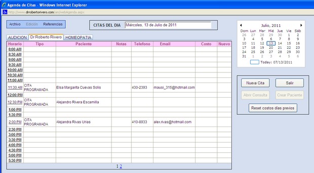 En el caso de varios médicos, la agenda separa las citas por nombre del médico