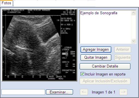 Las imágenes generadas por el sonógrafo pueden ser insertadas a través de un