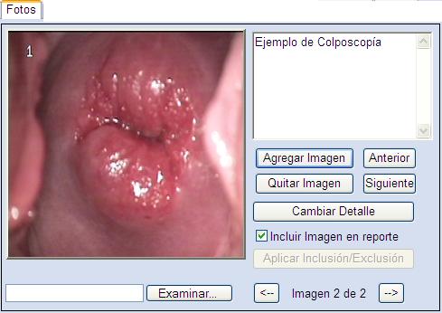 Las imágenes generadas por el colposcopio pueden ser insertadas a través de un