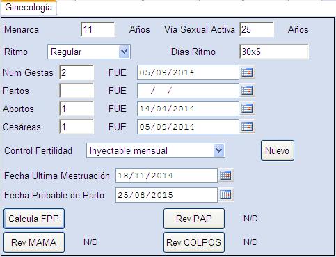 toda la información ginecológica del paciente: