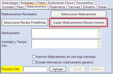 | Copiar todos los medicamentos de la última consulta a la nueva consulta |