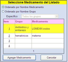 Al seleccionar un grupo, el software le listará aqulellos medicamentos que se
