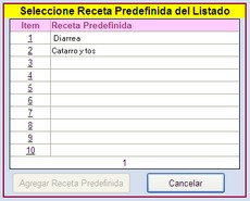 Ejemplo: Ud define una receta predefinida llamada "DIARREA" la cual contiene